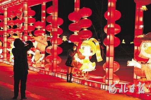 市民在衡水园博园内游玩赏灯。河北日报记者焦磊摄