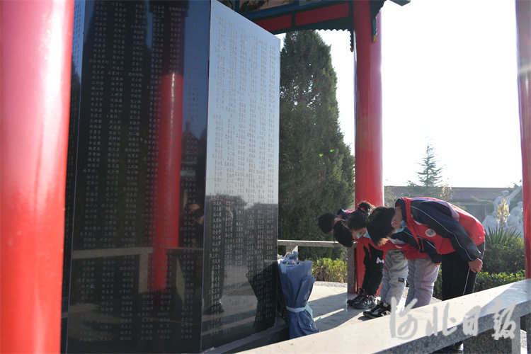 图为临城县菅等中心小学的学生们在烈士陵园学习革命历史。董晓峰摄