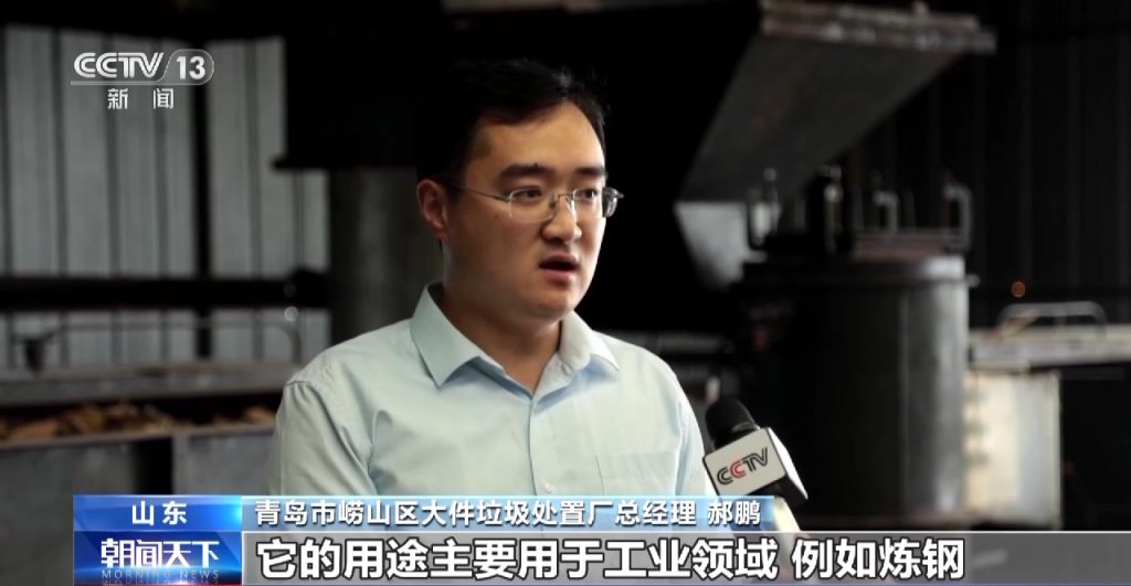 青岛市崂山区大件垃圾处置厂总经理 郝鹏:利用再生材料制作的生物炭,市场价格在4000元每吨,它的用途主要用于工业领域,例如炼钢。木醋液的价格在3500元每吨,主要用途在医药领域,具有消毒消杀的作用。