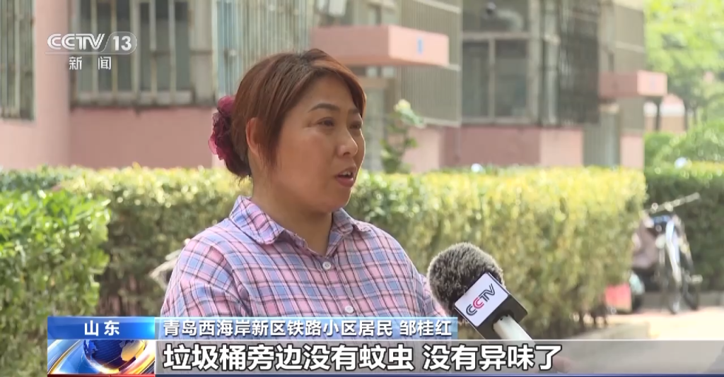 青岛西海岸新区铁路小区居民 邹桂红:垃圾桶旁边没有蚊虫、没有异味了,很整洁、很干净,小区的整体环境也提升上去了,所以说我们特别想把垃圾分类分好,感觉居住在这个环境很舒服。