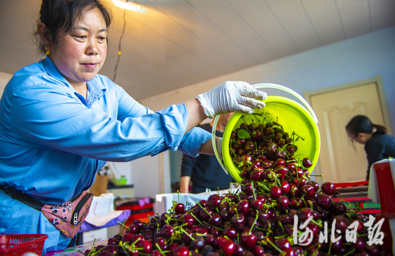 近日,在沽源县平定堡镇元宝山村,博新农业发展有限公司种植的樱桃进入成熟期,工人正在分拣刚采摘的樱桃。河北日报记者李东宇摄