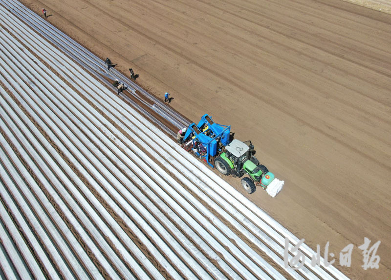 近日,在塞北管理区的农业产业基地内,工作人员正操作专用机械播种胡萝卜。河北日报通讯员武殿森摄