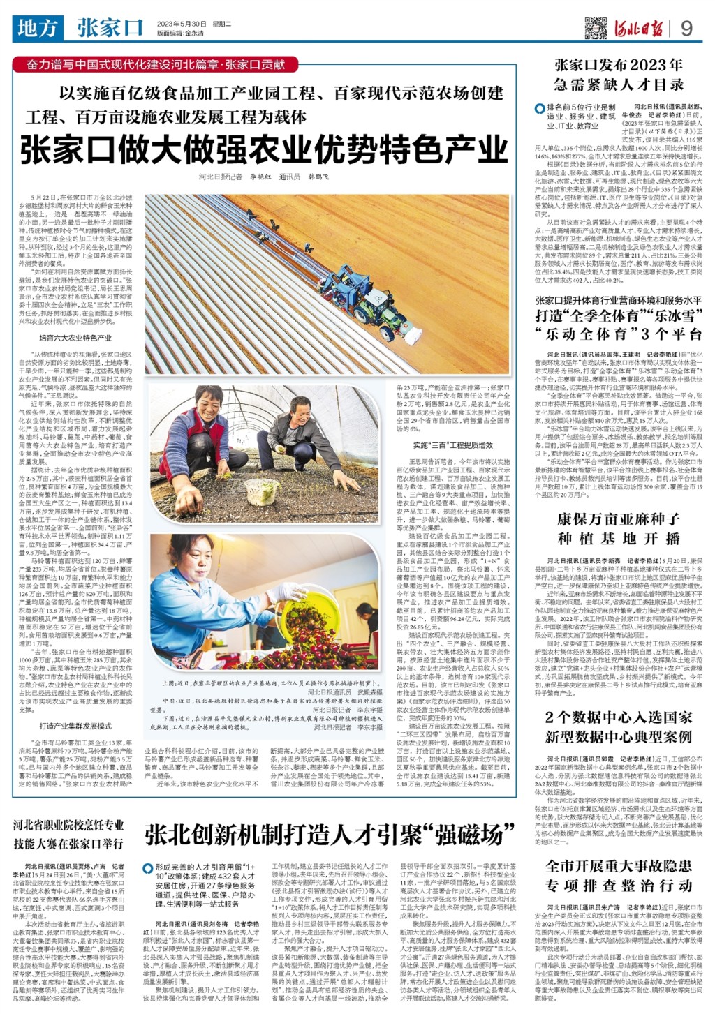 近年来,张家口市依托特殊的自然气候条件,深入贯彻新发展理念,坚持深化农业供给侧结构性改革,不断调整优化产业结构和区域布局,着力发展起杂粮油料、马铃薯、蔬菜、中药材、葡萄、食用菌等六大农业特色产业,培育打造产业集群,全面推动全市农业特色产业高质量发展。