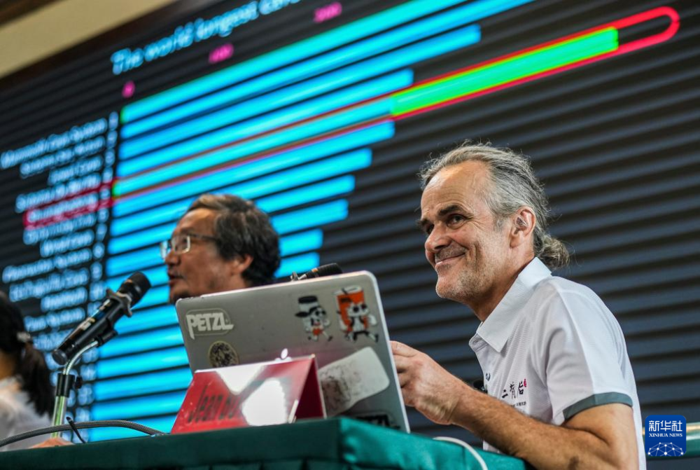法国洞穴联盟成员、国际洞穴探险家让·波塔西在新闻发布会上(9月26日摄)。新华社记者陶亮摄