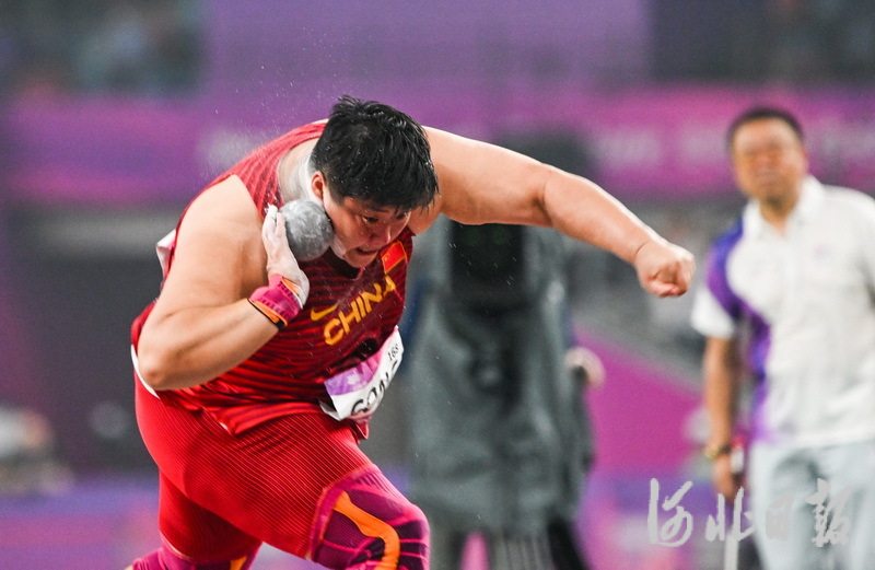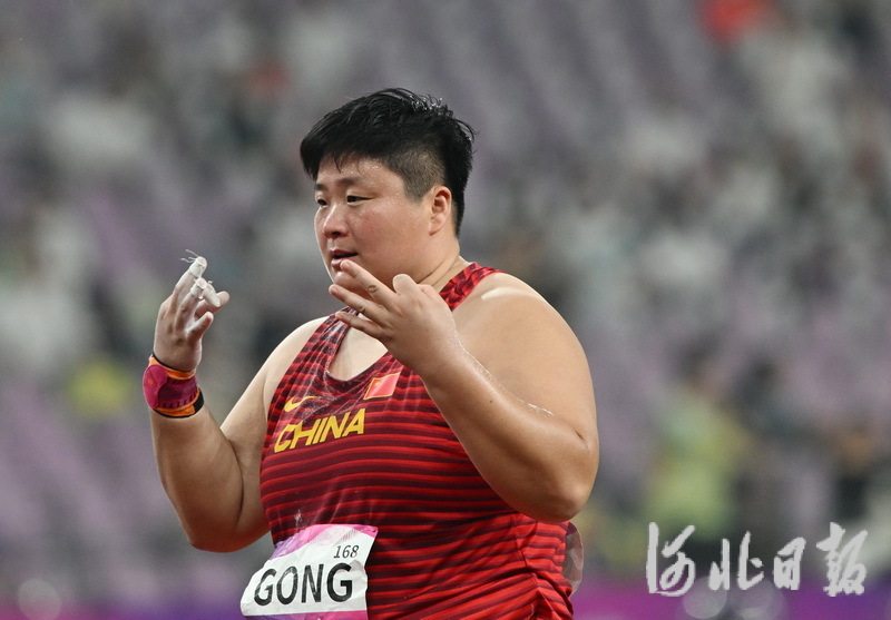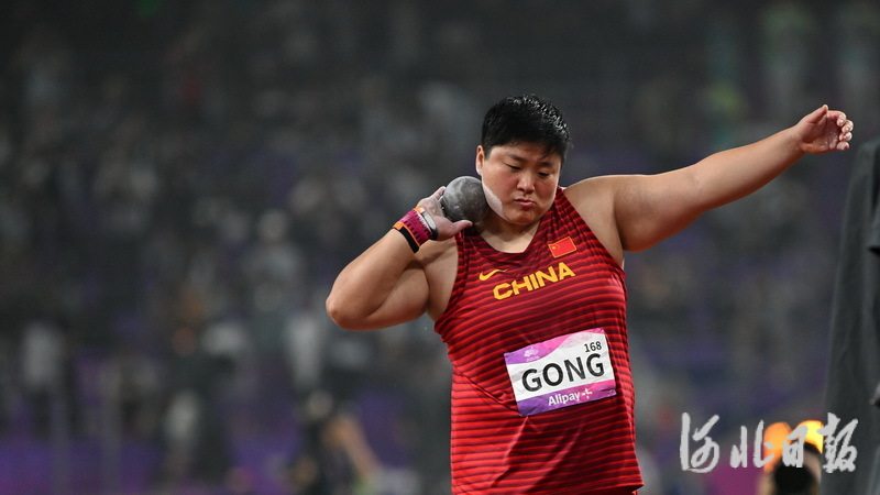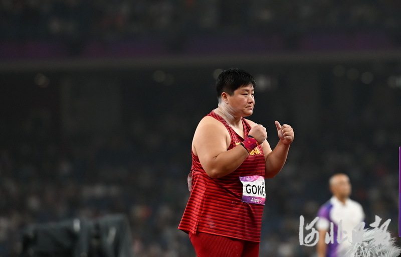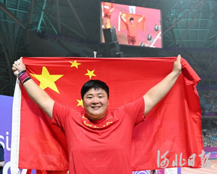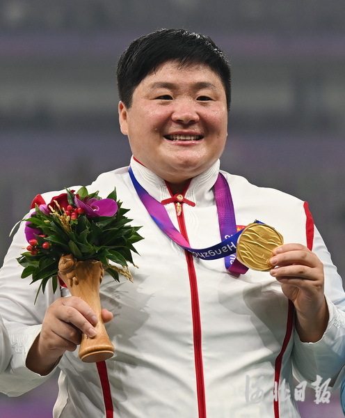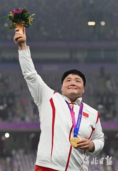 9月29日,河北选手巩立姣在颁奖仪式上。