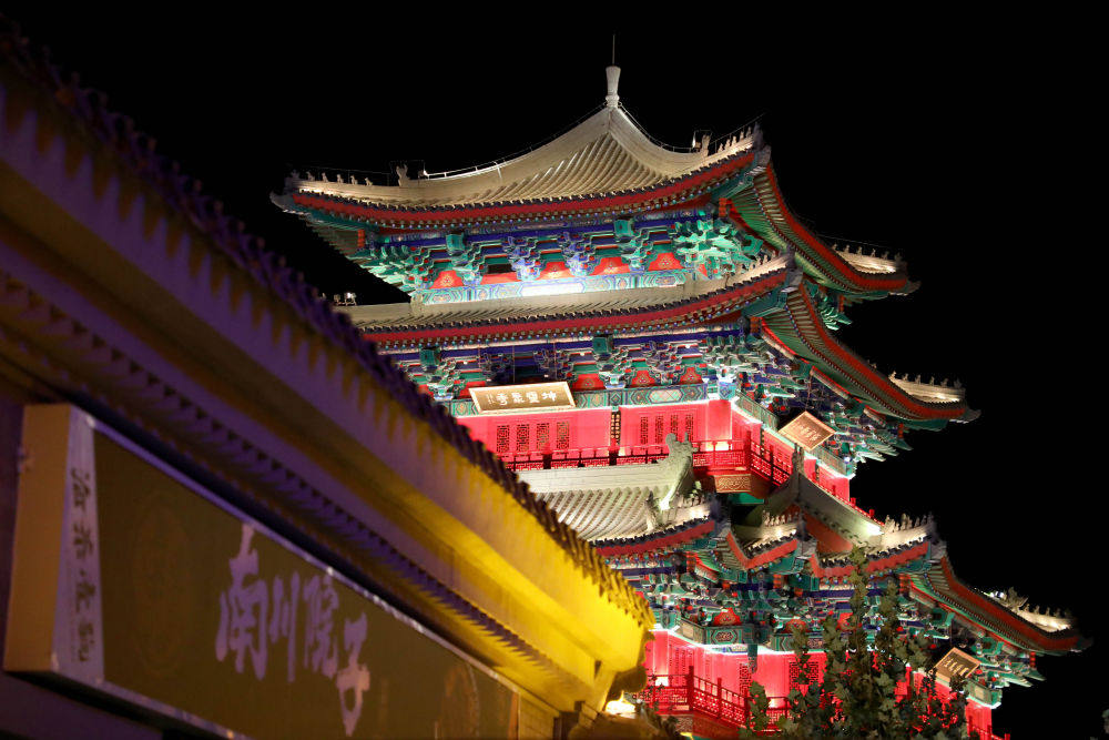 ↑这是10月26日拍摄的河北省沧州市南川老街夜景。新华社记者 骆学峰 摄