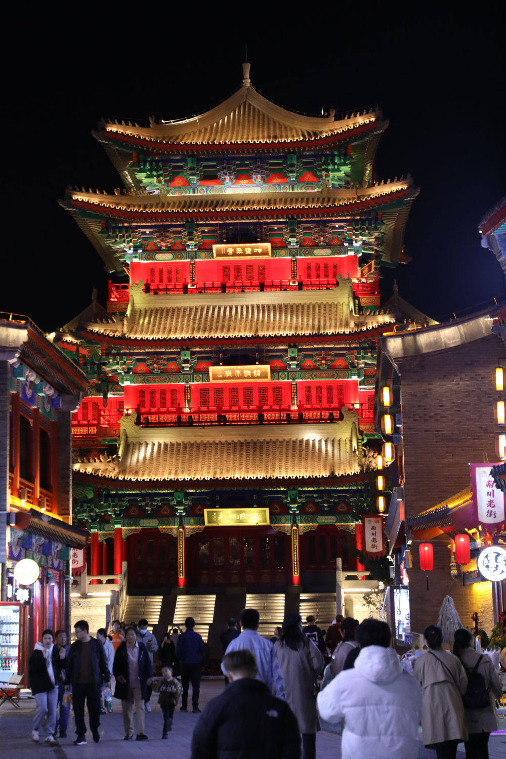 入夜时分,在河北省沧州市中心城区大运河畔,汇集美食、文创、民俗等多种元素的南川老街灯火辉煌。