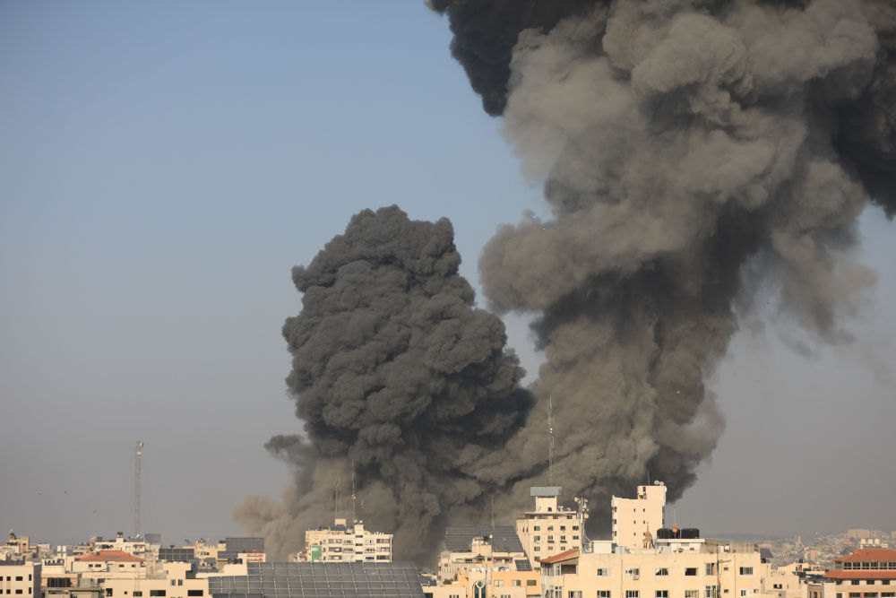 这是10月25日在加沙城拍摄的以色列轰炸加沙地带后升起的浓烟。新华社发(亚西尔·库迪摄)