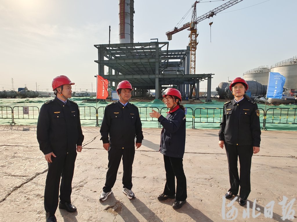 10月24日,内丘县市场监管局工作人员来到河北建滔能源发展有限公司,现场了解该公司年产80万吨醋酸项目建设进展情况。河北日报客户端记者邢 云摄