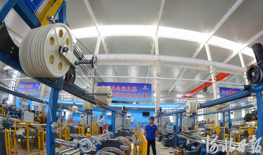 9月15日,位于宁晋县的河北欧达辐照中心工人在辐照电线电缆生产线巡检。河北日报客户端记者 赵永辉摄