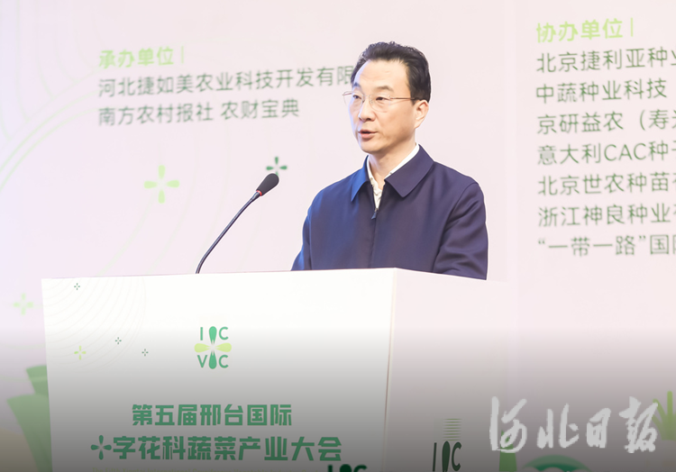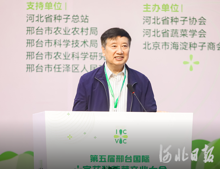 河北省农业农村厅副厅长孙晨光介绍河北蔬菜产业相关情况。河北捷如美农业科技开发有限公司供图