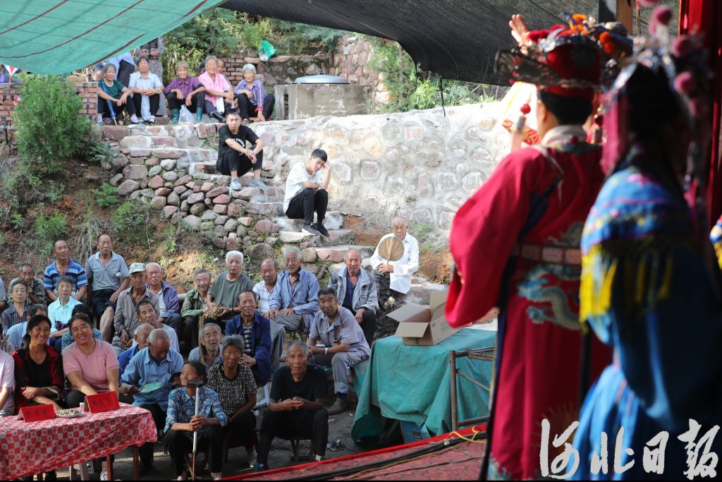 2022年8月11日,在井陉县郭家口村,群众聚在一起观看晋剧表演。(河北日报资料片)