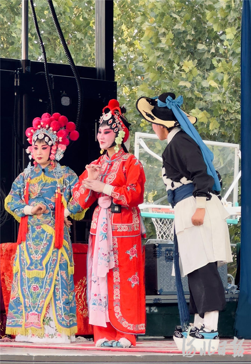 活动现场,深泽县坠子剧团的艺术家们纷纷亮出绝活,带来的经典坠子戏《少侠传奇》传统剧目经典唱段的演绎,将师生们带入戏曲展演和交流的情景之中。艺术家们的一招一式,一笑一颦无不显示出极高的戏曲功底和演出水平,他们精湛的演技、惟妙惟肖的肢体动作,优美的唱腔,赢得了在场师生们的阵阵喝彩和掌声。