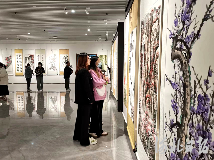 此次书画展将持续到11月18日,共展出了200余幅优秀书画作品,其内容广泛,包括书法、花鸟、山水、人物等题材,展现了广大书画爱好者与党同心、与时代同步、与人民同行的艺术人生。武国栋摄影报道