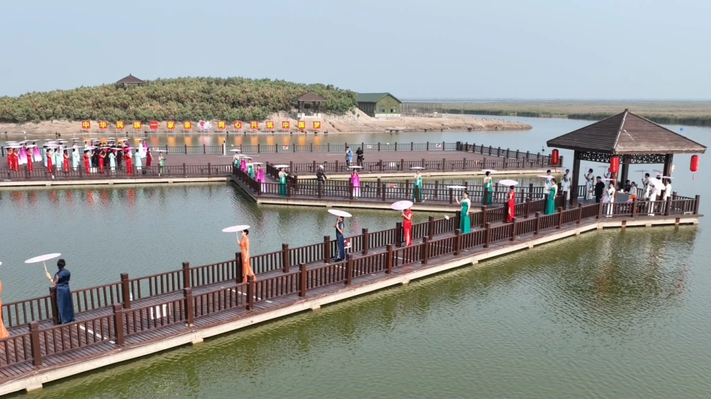 南大港湿地“石榴花开 湿地芳华”旗袍秀。