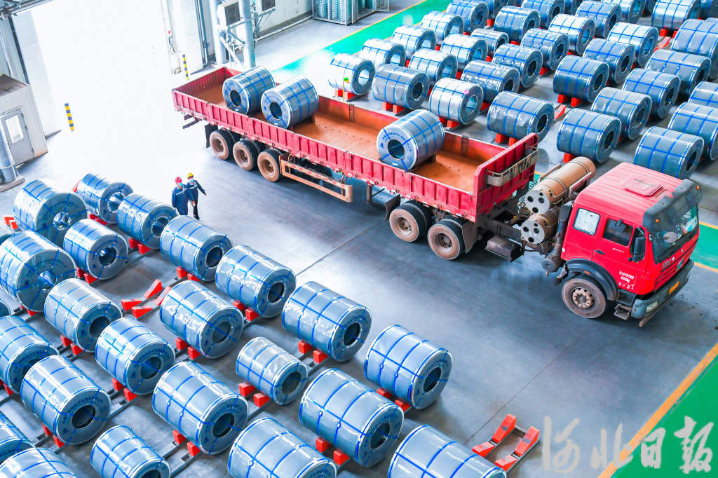 10月14日8时,承德钒钛公司冷轧事业部镀锌产线库区,一卷卷泛着亮光的高端结构镀锌产品整装待发。“这是即将出口泰国用于新能源光伏支架领域的产品,表观质量和包装标准一定要满足海外客户需求。”该公司冷轧事业部产品销售室业务主管李明杰边检查边叮嘱。
