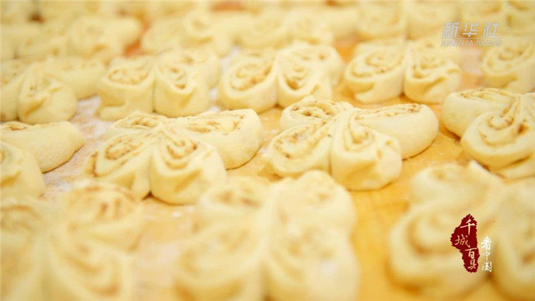 在河北省廊坊市永清县,“发面佛佛儿”是一道深深烙印在当地百姓心中的传统美食。醒发的面历经揉面、抹油、撒椒盐、卷面、切面、定型、上炉等多道工序后,其成品一般呈蝴蝶状,圆润丰满,栩栩如生,犹如一件艺术品。新鲜出炉的发面佛佛儿金黄诱人,香味扑鼻,深受群众喜爱。