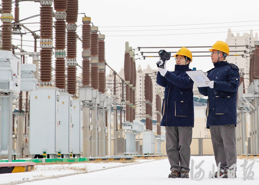 12月14日,秦皇岛供电公司员工对220千伏王校庄变电站供电设施进行特巡。河北日报通讯员 史文全摄