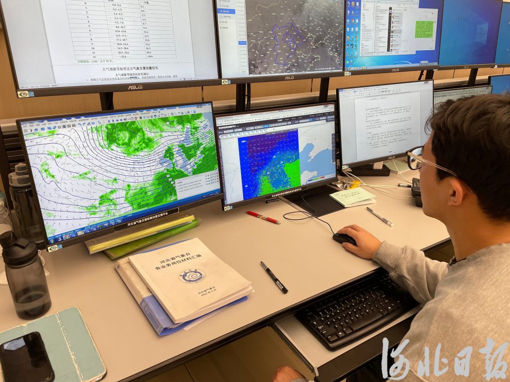 12月15日,河北省气象局气象大厦内,工作人员正在观测天气变化情况。河北日报记者魏雨摄