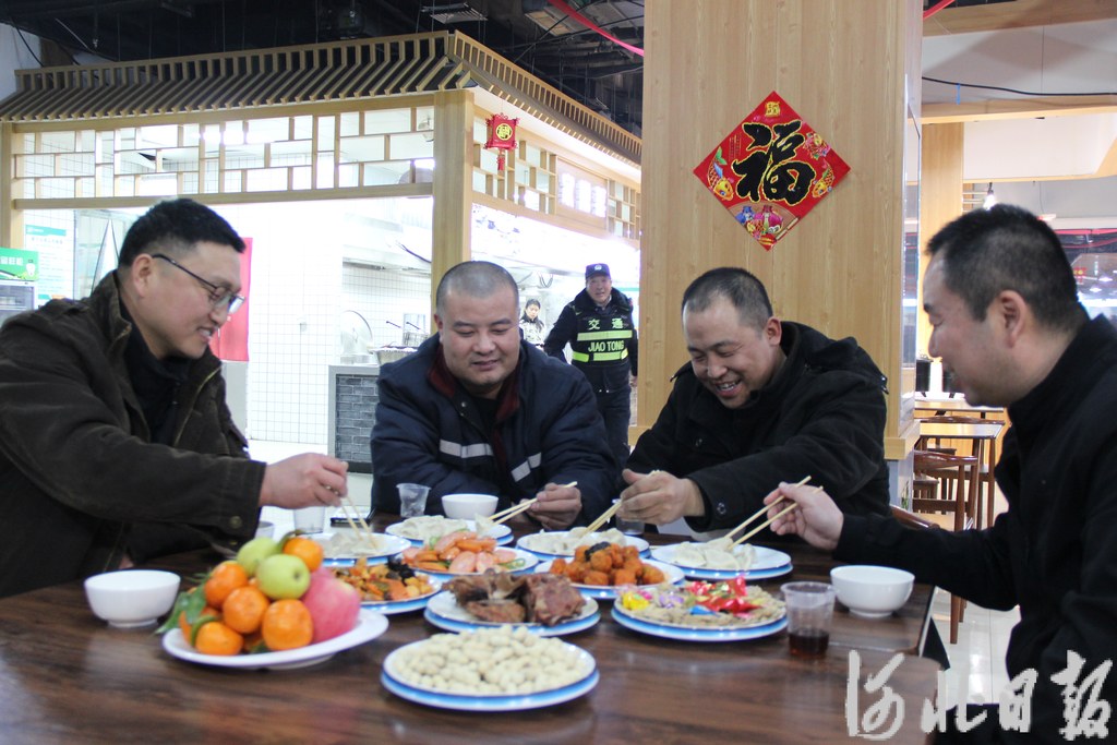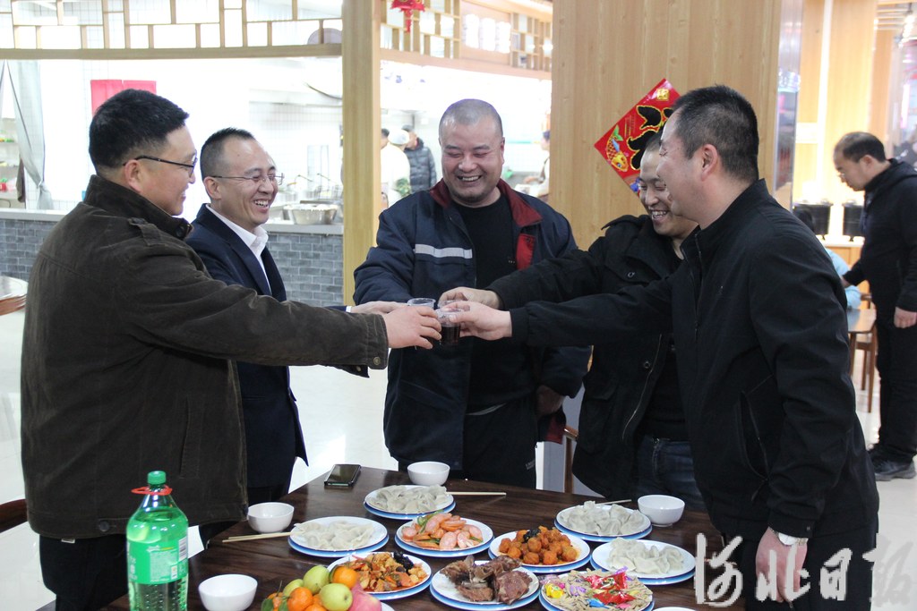 “师傅们,今天我们准备了过年的饺子,平安皮儿包着如意馅,祝愿大家平安幸福!”谢赞的一句话,让饭桌上的气氛活跃起来。