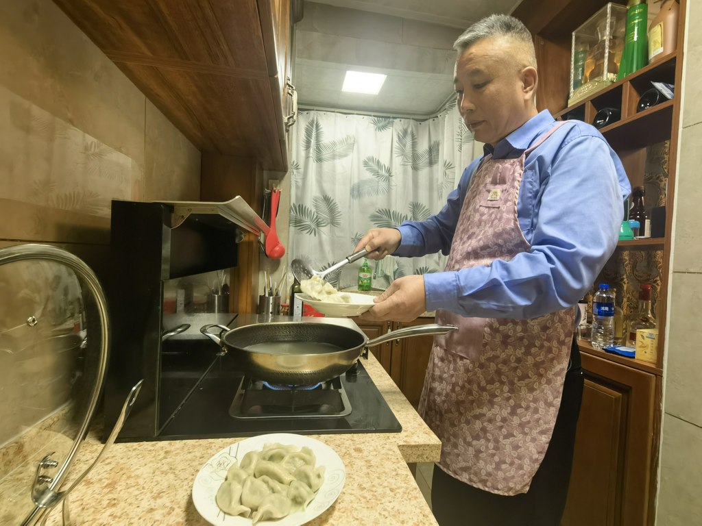 2月9日晚,秦皇岛市公安局海港分局燕园派出所民警王宝军正在煮饺子。河北日报记者孙也达摄