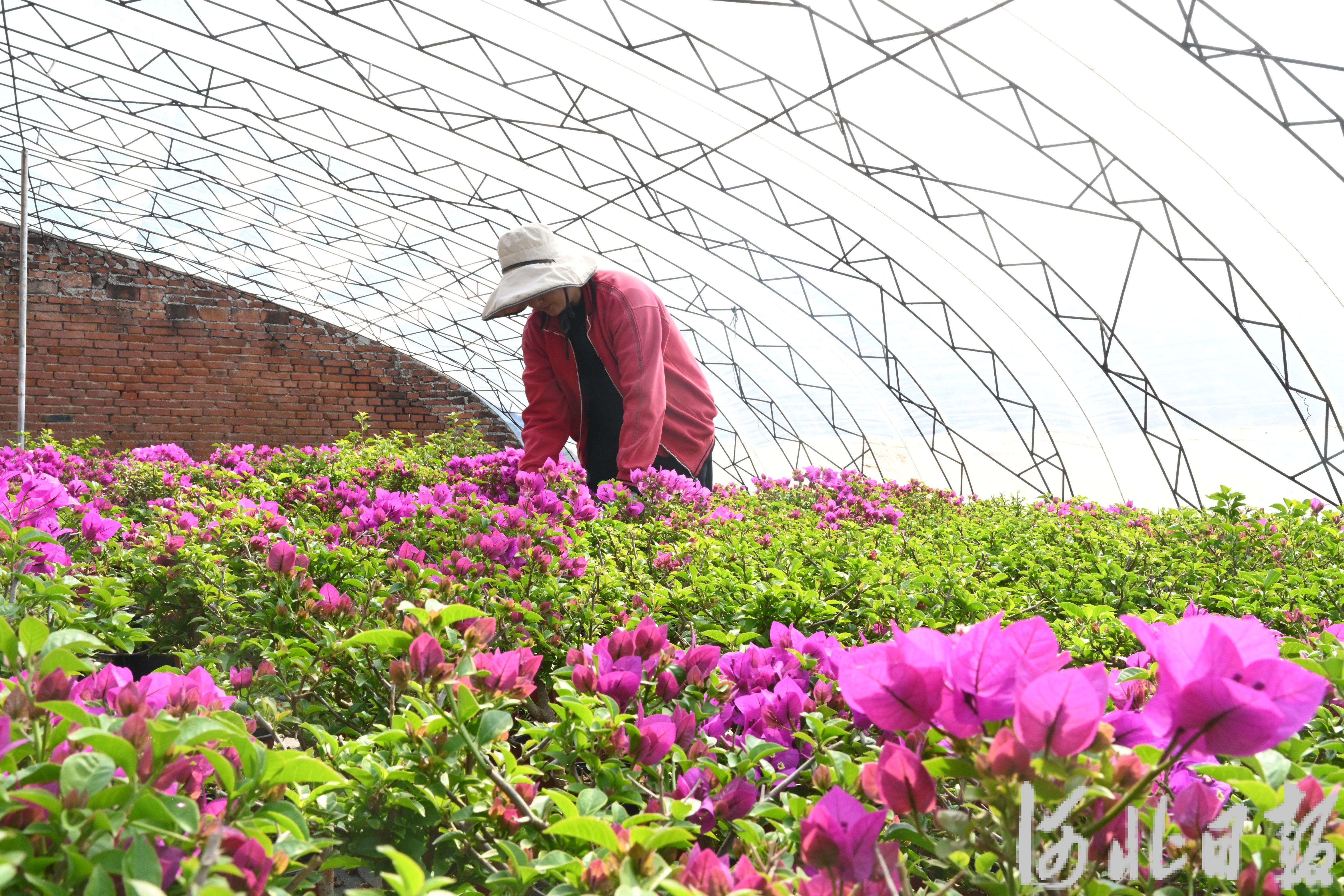 3月26日,杏树园村村民在温室大棚内管理花卉。河北日报通讯员 牛春富摄