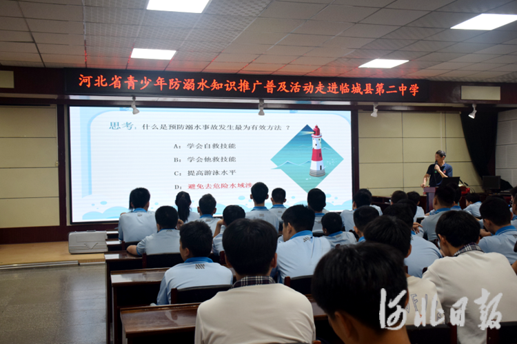 河北日报客户端讯(通讯员王新霞、王永周)6月26日,河北省青少年防溺水知识推广普及活动宣讲团走进临城县第二中学。