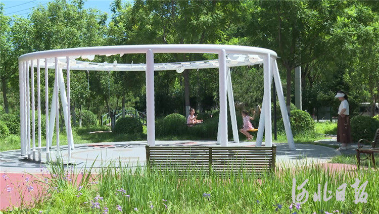 不仅老年人喜欢“口袋公园”,这里还成为孩子们的乐园。在位于固安县京九西路与惠文东街交叉口西北角的于成龙游园,秋千、步道、绿植成了孩子们的游乐场,他们三五成群,玩得不亦乐乎。