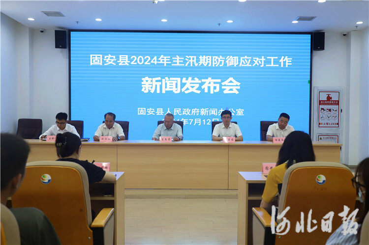 7月12日,固安县召开2024年主汛期防御应对工作新闻发布会。图为新闻发布会现场。通讯员陈放摄