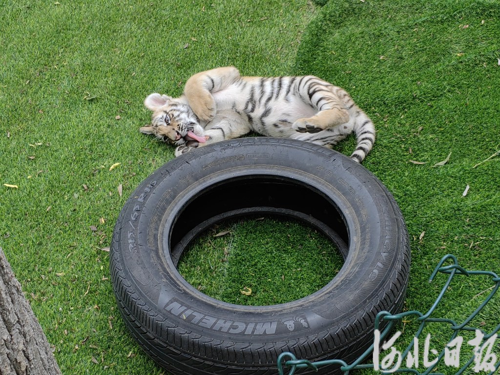 8月12日在黑龙江东北虎林园拍摄的小老虎。河北日报记者马朝丽摄