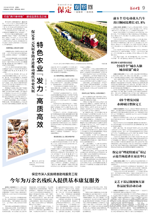 在精准招商上,该市积极开展城市对接、项目投资、经贸洽谈等活动,推介保定农产品,开展供需对接,全力招引具有核心竞争力的细分行业龙头企业和具有技术创新平台支撑的节点企业。