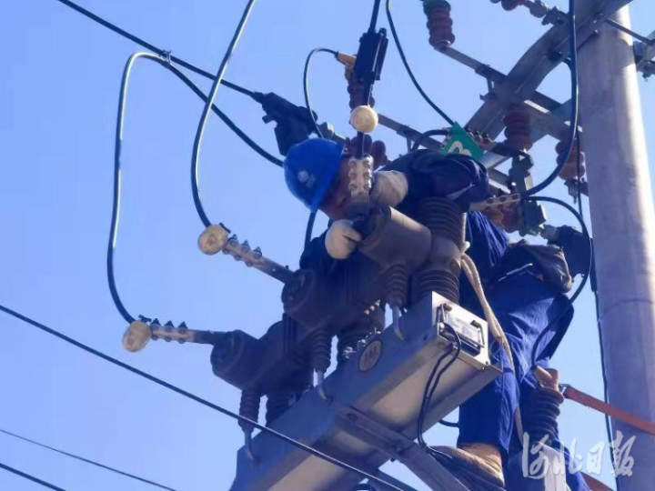 图为国网冀北电力有限公司香河县供电分公司电力工作人员检修线路。