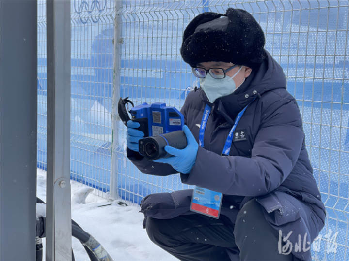 图为冀北廊坊供电公司冬奥电力保障团队里来自香河县公司的队员蔺涛在冬奥会工作现场。