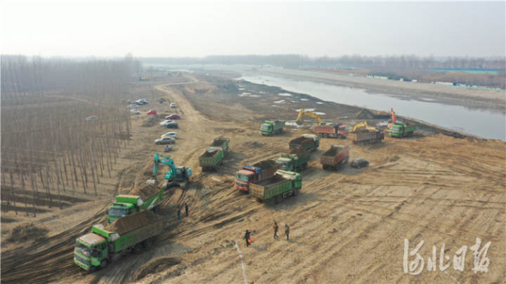 河北日报客户端讯(通讯员安青松、田家霖)3月15日,走进河北香河县北运河中心码头施工现场,热火朝天的施工场面让人振奋。在北运河的岸边河滩地上,上百辆工程机械有序作业,挖掘机、推土机轰鸣声震耳欲聋,重型卡车来回穿梭……