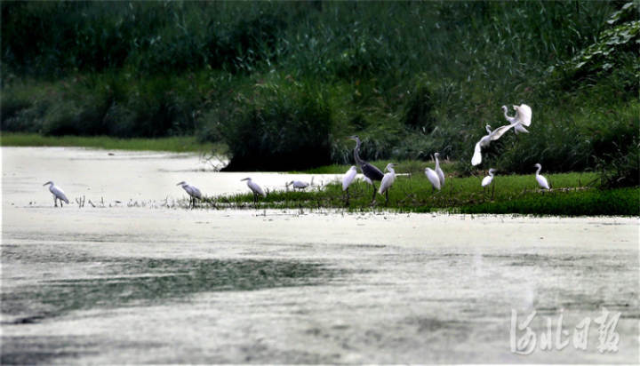 生态环境持续改善,文安县赵王新河湿地公园内水鸟云集。