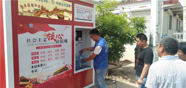 推进健康惠民水站建设,既政府协调村街提供固定场所,企业免费安装净水设备,村街和企业合作管理运营,百姓刷卡取水。此次投放的净化设备,利用原有的自来水管道,便可净化出矿物质水和纯净水,避免了高成本的水路改造,节约了大量施工成本。