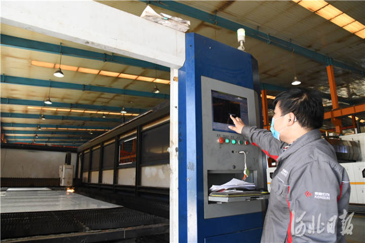 4月22日,在河北省文安县经济开发区康鑫电子有限公司生产车间,工人对提供北京地铁昌平线车辆门窗零部件进行激光切割加工工作。李静然摄