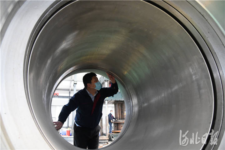 4月22日,在河北省文安县经济开发区泽悦公司生产车间内,工人正在检查焊接球阀质量。 李静然摄