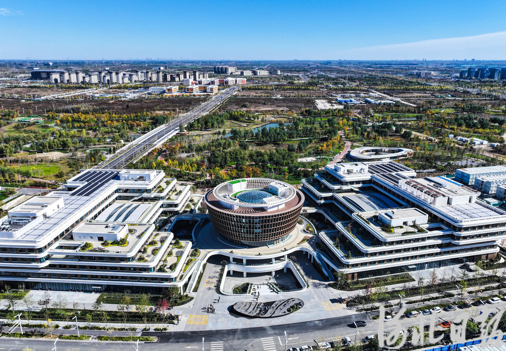 2024年11月4日,无人机航拍位于雄安新区启动区的中国电信智慧城市产业园。河北日报记者 李 畅摄
