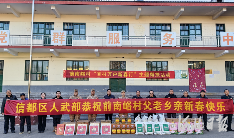 河北日报客户端讯(刘子涵)1月14日下午,邢台市信都区人武部政治委员张汉铎带队到挂钩帮扶的前南峪村,开展“百村万户新春行”主题帮扶活动。