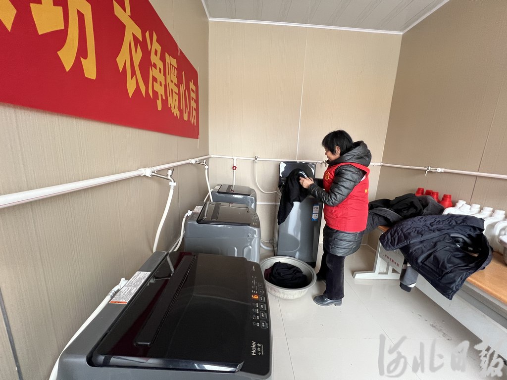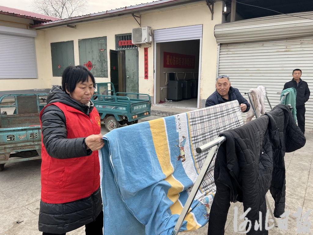 1月24日上午,临城县东镇镇古鲁营东村范福元蹬着三轮车,带着几件外套和裤子来到村委会旁边的爱心洗衣坊。“又来麻烦你们了,还有这几件也给洗洗吧。”范福元说。“不麻烦,洗完晾干下午就能取。”正在现场值守的村委会委员赵英芬说。