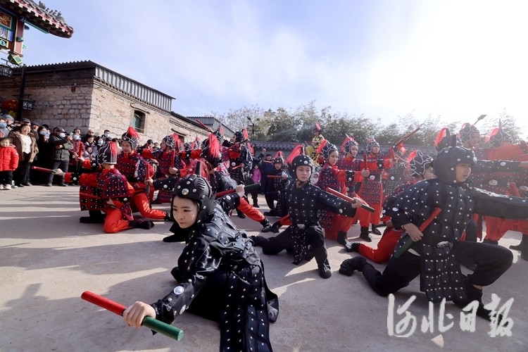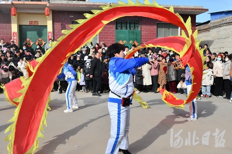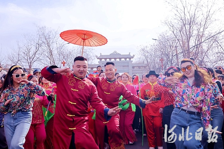 活动现场,信都战舞、武术、秧歌、拉碌碡、舞龙等特色浓郁的各类民间艺术轮番登场。腰鼓表演鼓手精神抖擞,鼓点铿锵有力,瞬间点燃巡游现场的气氛。热情奔放的大秧歌、诙谐幽默的拉碌碡、喜庆热闹的舞龙等传统民俗表演接连不断。演员们身着鲜艳的服装,手持彩扇、红绸,尽情展示传统民俗文化的独特魅力。