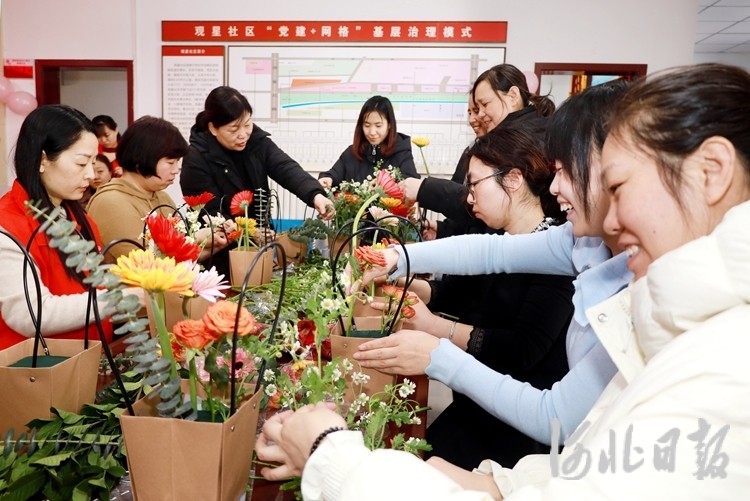 在“三八”妇女节到来之际,3月5日,邢台市信都区团结路街道妇联在观星社区开展“绽放她力量·美丽共成长”志愿服务活动,为辖区女性开展公益美容讲座、美妆课堂、女性健康咨询、艺术插花等志愿服务活动,以花为媒传递节日祝福。张建华摄影报道