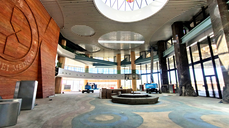 从星仪传感器项目现场向南不到10公里,潮白河畔,备受瞩目的河北燕达陆道培医院项目已进入装饰装修收尾阶段。