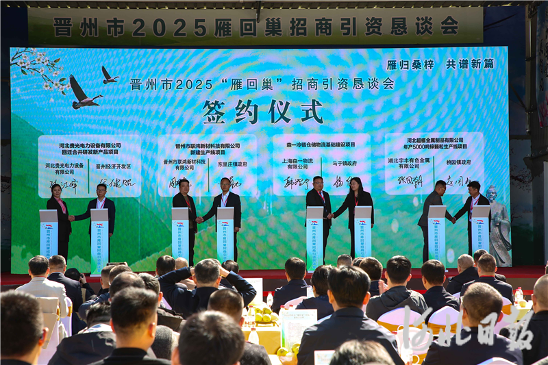 河北日报客户端讯(邢园园、石珉玮)4月5日,晋州市“雁回巢”招商引资恳谈会在马于镇北辛庄百年生态梨园举行,邀请来自全国各地的晋州籍在外人士、企业家100余人参会。