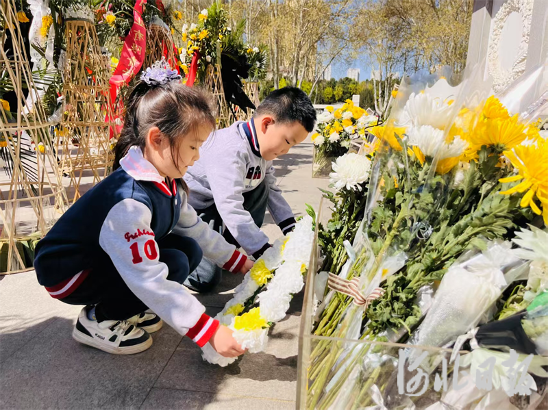 4月2日上午,石家庄市第二幼儿园幼教集团组织90名大班小朋友到华北烈士陵园进行清明节祭扫活动。孩子们在班级老师的带领下走进陵园,在英雄纪念碑前参加了公祭大会,孩子们低头默哀。在老师的带领下,孩子们献上自己亲手制作的小白花,寄托深深的哀思,表达对英雄的无限敬仰。
