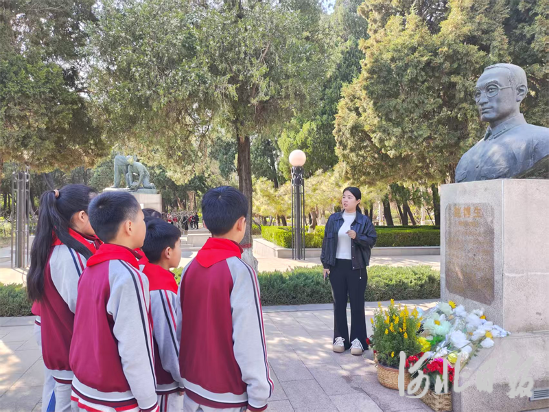 3月31日下午,石家庄市新华区东营学校全体党员教师及优秀少先队员来到华北军区烈士陵园开展扫墓活动。教师们在烈士铜像前为队员们讲述烈士的英勇事迹,希望队员们能够珍惜现在来之不易的生活。队员们用自己的方式为烈士献礼——朗诵诗歌,并分享先烈故事。随后队员们敬献鲜花,深深鞠躬,表达对先烈的缅怀与敬意。