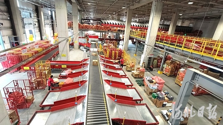 作为固安县首个“承诺即开工”改革试点项目,京东智能产业园廊坊固安二期项目自2023年启动以来进展迅速,已于2024年12月陆续竣工验收并投入使用。走入工业智能分拨中心,环形分拣机、窄带分拣机、信封圆盘机等智能化分拣设备正在高速运转;无人智能叉车、无人机配送系统的应用也将分拣中心的自动化率由35%提升至92%,大幅降低人工成本,提高了分拣效率。目前,这里日均产能约80万件,单小时峰值产能可达7万件/小时,