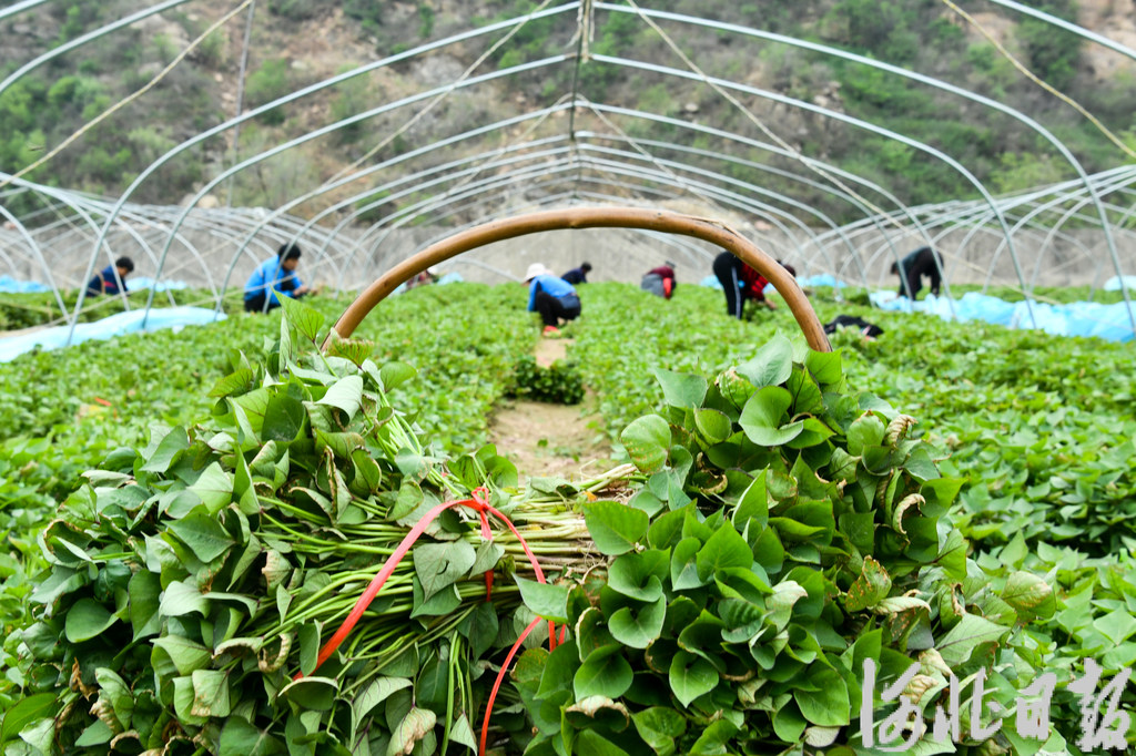 河北日报客户端讯(宋小青)近日,在邢台市信都区龙泉寺乡好薯福家庭农场育苗基地,一垄垄嫩绿的红薯苗长势喜人,工人们正忙着剪苗、分株、扎捆……现场一派繁忙的景象。