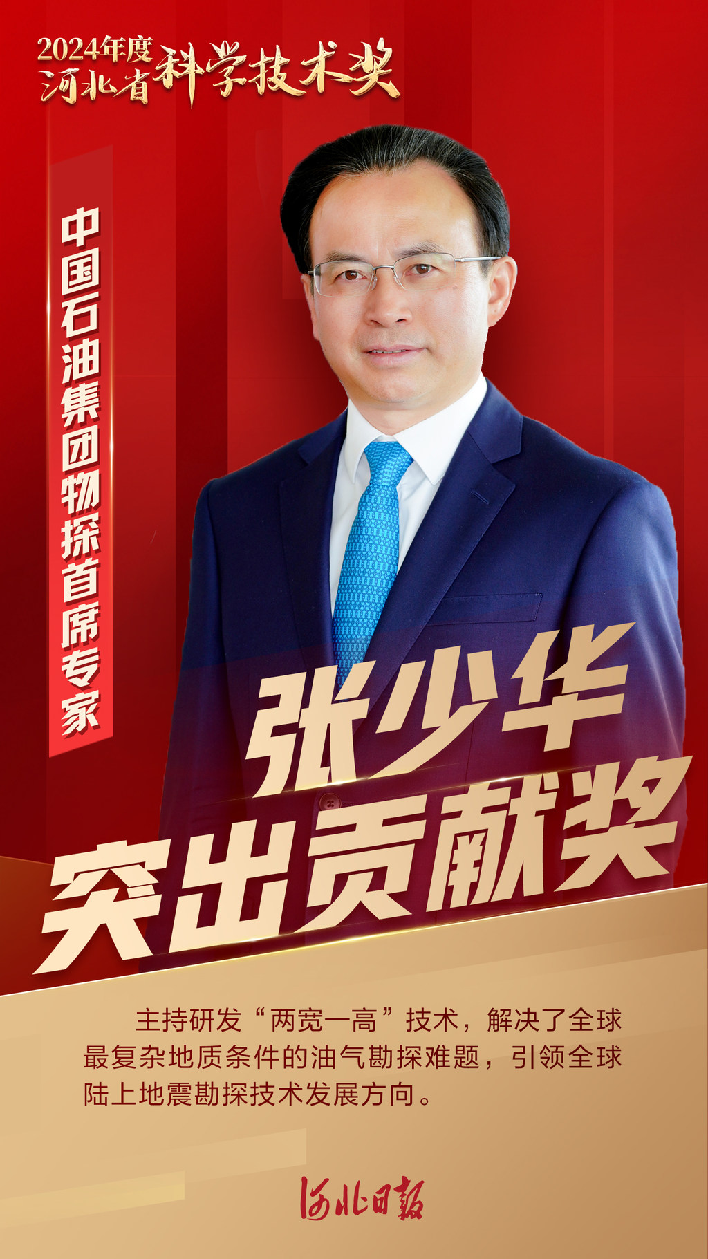 他就是中国石油集团物探首席专家、东方物探公司国家油气地球物理勘探技术创新中心技术负责人张少华。4月21日,张少华登上2024年度河北省科学技术突出贡献奖领奖台。